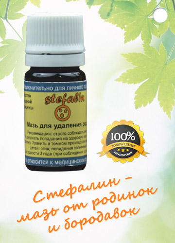 Удаление родинок происходит по выписанной инструкции с соблюдением сроков и методики применения. Если вдруг родинки или бородавка остались, и мазь Стефалин вам не помогла, вы гарантировано получите свои деньги обратно.
